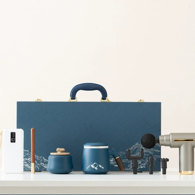 ภายในชุดประกอบด้วยของใช้ที่ผสมผสานระหว่างความคลาสสิกและความทันสมัยได้อย่างลงตัว เช่น แก้วชาและชุดภาชนะสำหรับชงชาเข้าคู่กัน ซึ่งช่วยสร้างช่วงเวลาแห่งการผ่อนคลายในระหว่างวันทำงาน ขณะเดียวกันก็มีอุปกรณ์เสริมอย่างสมุดและปากกา รวมถึงอุปกรณ์อิเล็กทรอนิกส์ที่เป็นประโยชน์ต่อการทำงานและสุขภาพ ทำให้เป็นชุดของขวัญที่ใช้งานได้จริงในชีวิตประจำวันของผู้รับ