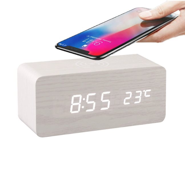 นอกเหนือจากความสวยงามแล้ว นาฬิกาเรือนนี้ยังมาพร้อมกับฟังก์ชันการใช้งานที่ตอบโจทย์ไลฟ์สไตล์ยุคใหม่ ด้วยหน้าจอแสดงผล LED ที่คมชัด สามารถบอกเวลาและอุณหภูมิห้องได้อย่างแม่นยำ พร้อมคุณสมบัติเด่นคือแท่นชาร์จไร้สายในตัว เพียงวางสมาร์ทโฟนที่รองรับลงบนนาฬิกา ก็สามารถชาร์จแบตเตอรี่ได้ทันที ช่วยลดความยุ่งเหยิงของสายไฟและทำให้พื้นที่ของคุณเป็นระเบียบอยู่เสมอ