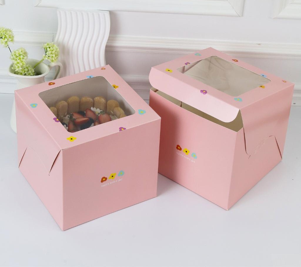 กล่องเค้ก 1 ปอนด์ ทรงสูง 20 ซม. ลายมินิมอลฟลาวเวอร์