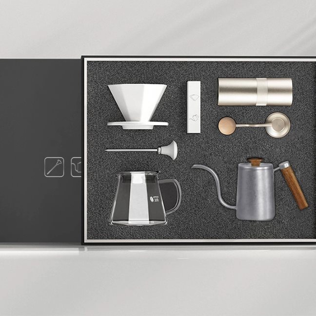 ในชุดประกอบไปด้วยกาต้มน้ำแบบปากยาว สำหรับควบคุมการไหลของน้ำได้อย่างแม่นยำ เครื่องบดเมล็ดกาแฟแบบพกพา เหยือกแก้วสำหรับรับกาแฟ กรวยดริป ถ้วยตวง และอุปกรณ์คนกาแฟ ทุกชิ้นผลิตจากวัสดุคุณภาพดี มีความทนทาน และได้รับการออกแบบมาอย่างพิถีพิถันเพื่อมอบประสบการณ์การชงกาแฟที่ดีที่สุดให้กับผู้ใช้ ไม่ว่าจะเป็นการใช้งานที่บ้านหรือพกพาไปในทริปท่องเที่ยว ชุดอุปกรณ์นี้ก็พร้อมสร้างสรรค์กาแฟแก้วโปรดของคุณได้อย่างง่ายดาย