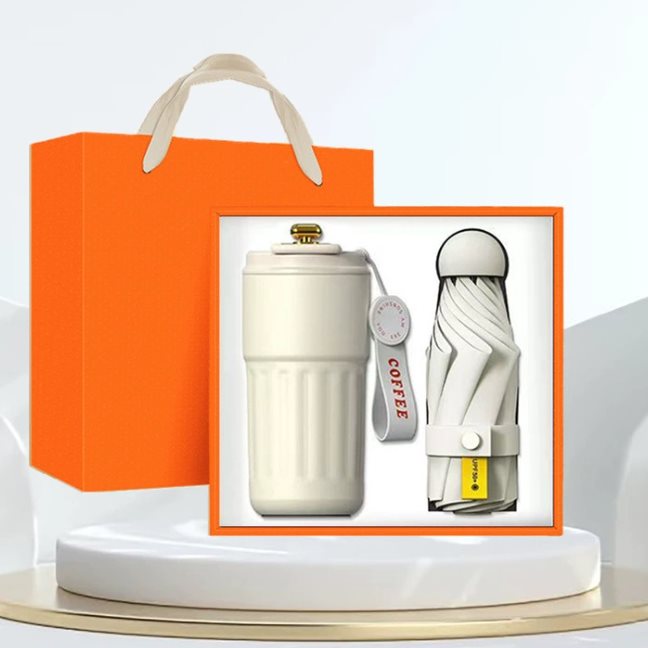 ชุดของขวัญนี้ถูกจัดเตรียมมาอย่างดีเพื่อตอบโจทย์การใช้งานในชีวิตประจำวันของคนยุคใหม่ที่ต้องการความสะดวกสบายและการพกพา ด้วยการรวมเอาแก้วกาแฟแบบเก็บอุณหภูมิเข้ากับร่มขนาดเล็กที่สามารถกันแดดกันฝนได้ ซึ่งเป็นไอเท็มที่จำเป็นสำหรับทุกคนในสภาพอากาศที่แปรปรวน บรรจุภัณฑ์สีสันสดใสที่มาพร้อมกับถุงหิ้วทำให้ชุดนี้ดูน่าสนใจและเหมาะสำหรับมอบเป็นของขวัญในโอกาสต่างๆ