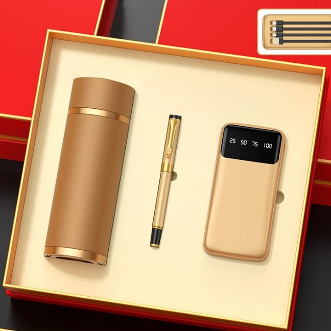 ภายในชุดประกอบด้วยกระบอกน้ำเก็บอุณหภูมิสุญญากาศ ซึ่งมีความสามารถในการรักษาอุณหภูมิของเครื่องดื่มได้ยาวนาน ไม่ว่าจะร้อนหรือเย็น ช่วยให้ผู้รับสามารถเพลิดเพลินกับเครื่องดื่มโปรดได้ตลอดวัน นอกจากนี้ยังมีปากกาสลักลายสวยงาม ซึ่งไม่ได้เป็นเพียงเครื่องมือสำหรับการเขียน แต่ยังเป็นสัญลักษณ์ของความน่าเชื่อถือและความใส่ใจในรายละเอียด ปิดท้ายด้วยพาวเวอร์แบงก์แบบมีหน้าจอแสดงผลปริมาณแบตเตอรี่ พร้อมสายชาร์จในตัว ซึ่งเป็นอุปกรณ์ที่ขาดไม่ได้ในยุคดิจิทัล เพื่อให้มั่นใจว่าอุปกรณ์อิเล็กทรอนิกส์ของผู้รับจะพร้อมใช้งานเสมอ