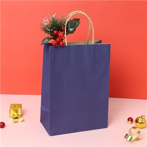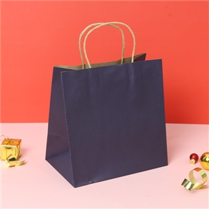 [0202027] ถุงใส่สินค้า ถุงใส่ขนม บรรจุภัณฑ์ ถุงกระดาษน้ำตาลหูเกลียว พิมพ์สีน้ำเงิน 23x15x23 ซม.