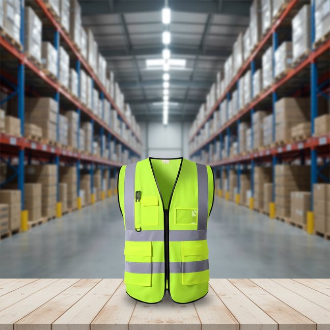เสื้อกั๊กสะท้อนแสงนี้เป็นอุปกรณ์สำคัญที่ช่วยเสริมสร้างความปลอดภัยในการทำงาน โดยเฉพาะในพื้นที่ที่มีความเสี่ยงหรือมีแสงสว่างน้อย เช่น โรงงาน โกดังสินค้า หรือพื้นที่ก่อสร้าง ตัวเสื้อผลิตจากวัสดุสีสะท้อนแสงที่สดใสและโดดเด่น เช่น สีเขียวนีออน สีส้ม และสีแดง เพื่อให้ผู้สวมใส่มองเห็นได้ง่ายในเวลากลางวัน และยังมีการติดตั้งแถบสะท้อนแสงสีเทาอย่างเป็นมาตรฐาน ทั้งในแนวนอนและแนวเฉียง ซึ่งจะสะท้อนแสงจากไฟส่องสว่างหรือไฟหน้ารถได้ดีเยี่ยมในเวลากลางคืนหรือในสภาพอากาศที่ไม่เอื้ออำนวย การออกแบบที่เน้นความสว่างและทัศนวิสัยที่ดีนี้จึงเป็นสิ่งจำเป็นเพื่อลดโอกาสในการเกิดอุบัติเหตุในทุกสภาพแวดล้อมการทำงาน