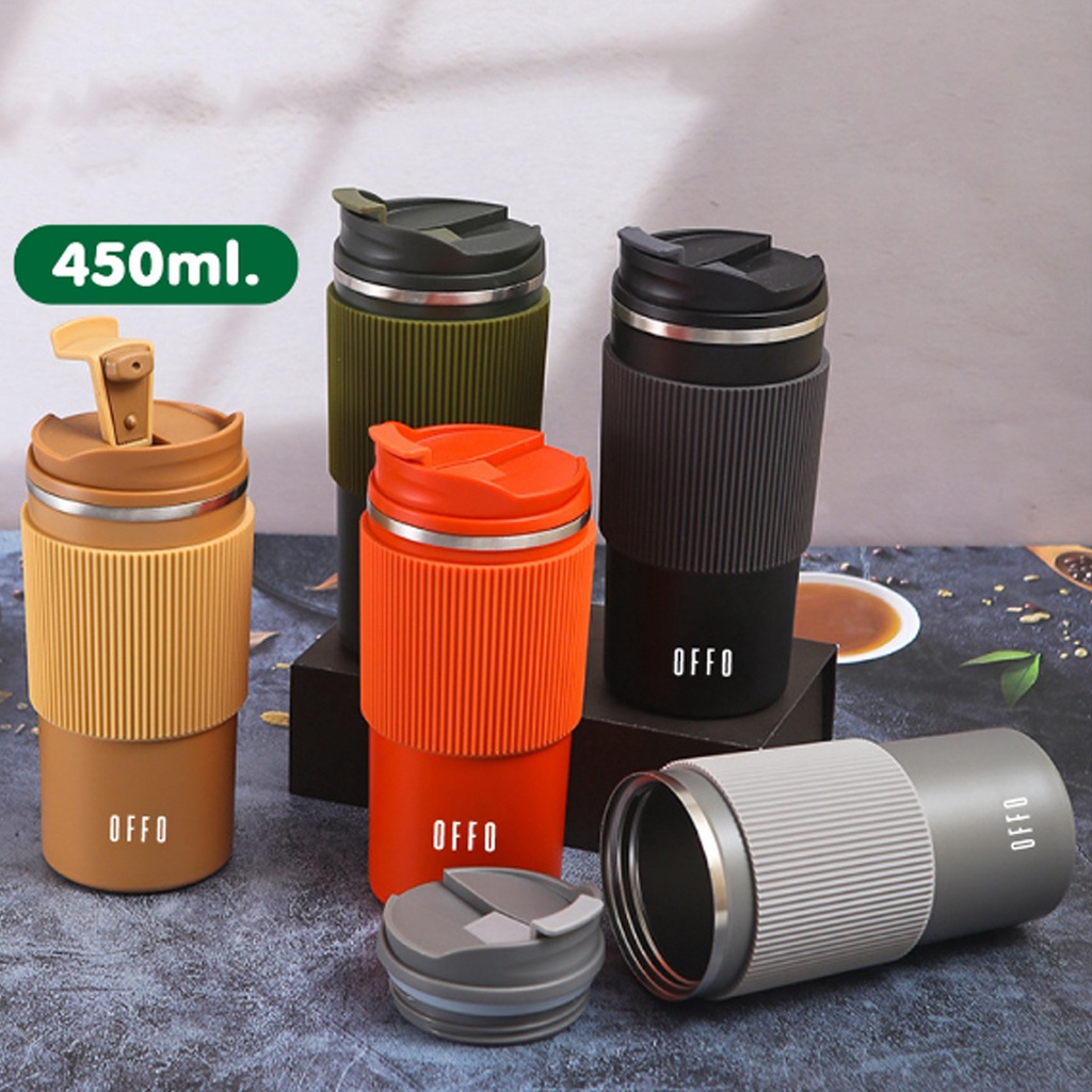 แก้วกาแฟเก็บอุณภูมิ 450ML สแตนเลส 304 ความจุ 450 มล. กระบอกเก็บอุณหภูมิ